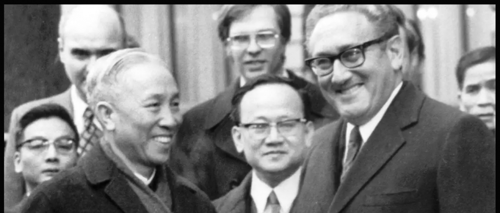 Sua maior conquista foi seu fracasso mais óbvio e espetacular – o “avanço” de 1972 dos Acordos de Paris negociando o fim da Guerra do Vietnã [foto].