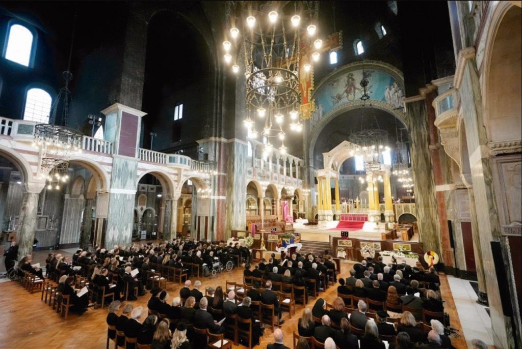 Pela primeira vez em quase 400 anos, um monarca britânico reinante assistiu oficialmente ao solene réquiem de um membro católico da família real na catedral de Westminster, em Londres, sede do arcebispo primaz católico da Inglaterra e Gales. Depois, o féretro foi trasladado em cerimonial de gala para o cemitério real de Frogmore, em Windsor.