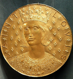 Moeda, conhecida como “Luis de ouro” (tesouro de Notre Dame), com a efígie do rei São Luis IX (séc. XIII)