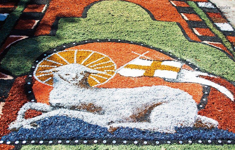 Ela se inspira – sem se confundir – no povo que estendeu seus mantos no chão na entrada de Nosso Senhor em Jerusalém, fato comemorado no Domingo de Ramos.