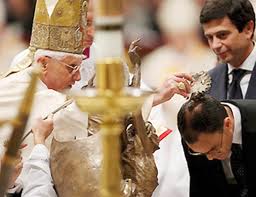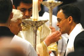| Após o batizado (foto acima), Magdi Allam faz a Primeira Comunhão |