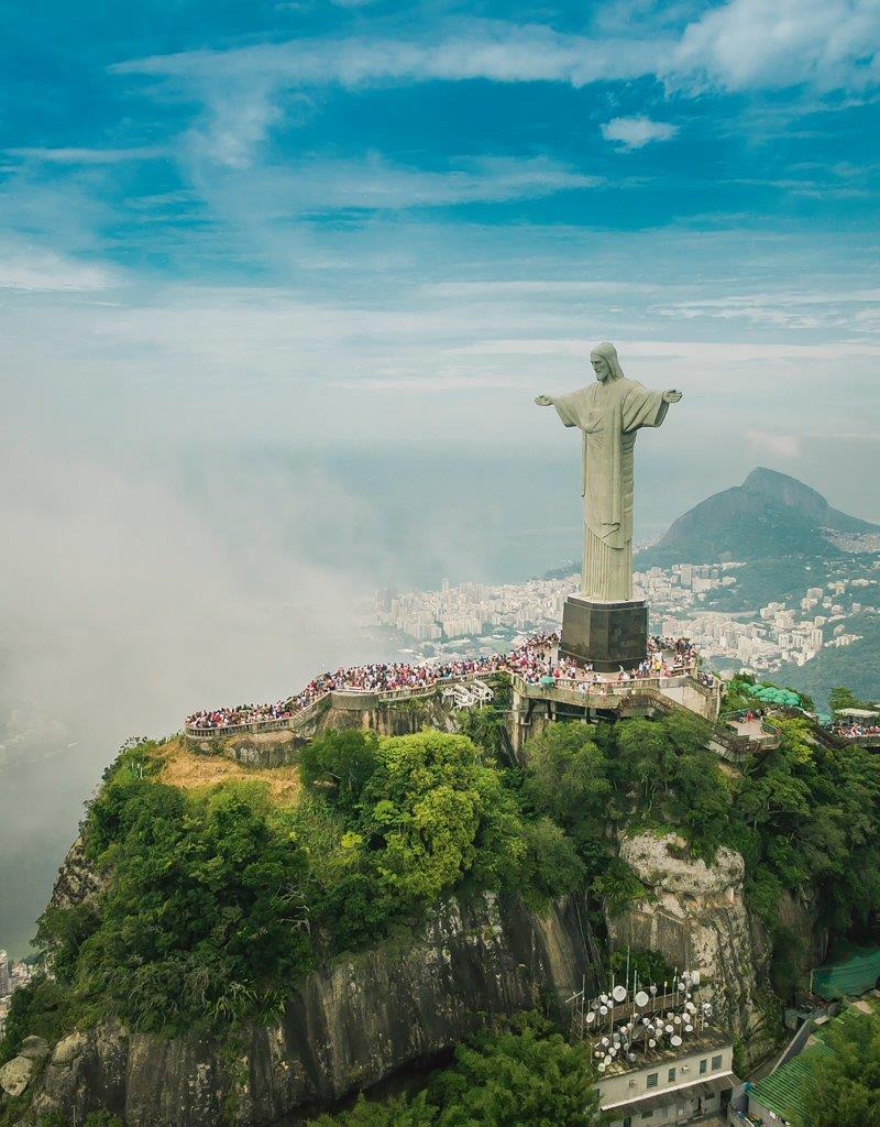 O alto do Corcovado proporcionou cenário inexcedível para a cerimônia, que principiou com céu límpido e terminou com as últimas luzes do crepúsculo.