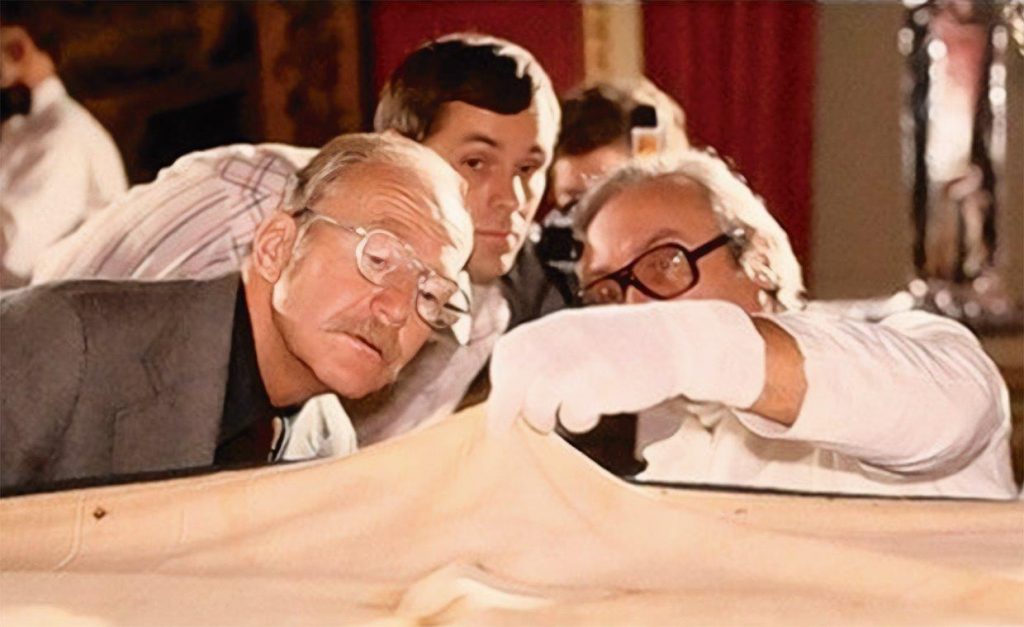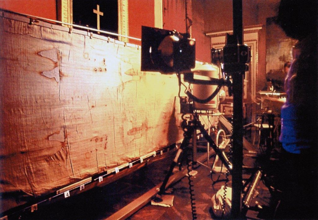 Cientistas do STURP – Shroudof Turin Research Pro ject (Projeto de Pesquisa do Sudário de Turim) fazem aprofundados estudos de cada detalhe do Sudário. |