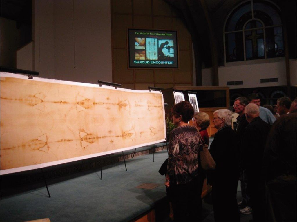 O público aprecia uma réplica do Santo Sudário numa das muitas exposições já realizadas pelo mundo todo. |