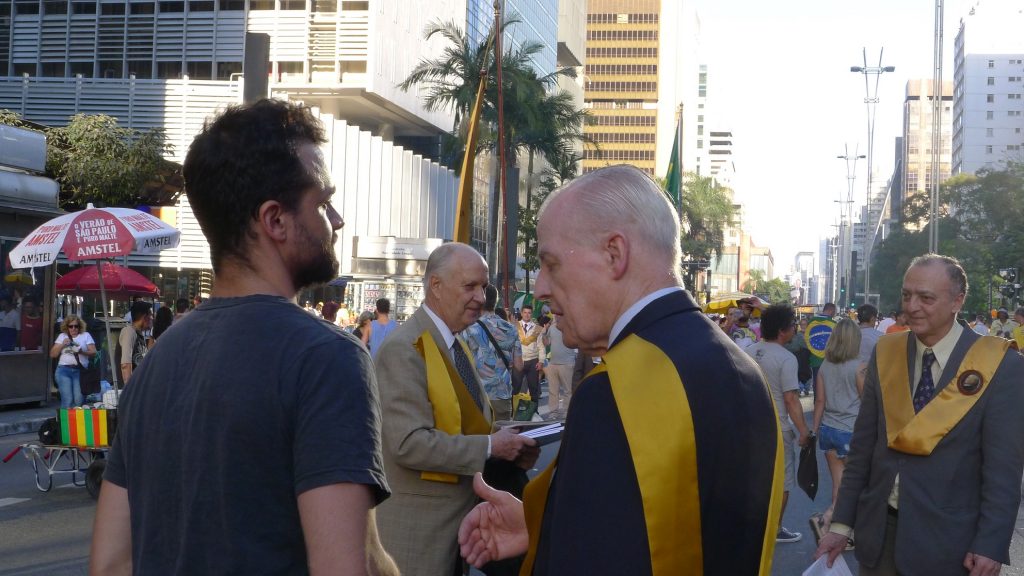 Juntamente com Dom Bertrand, José Luiz Fábio (à direita) participando de uma manifestação na Av. Paulista