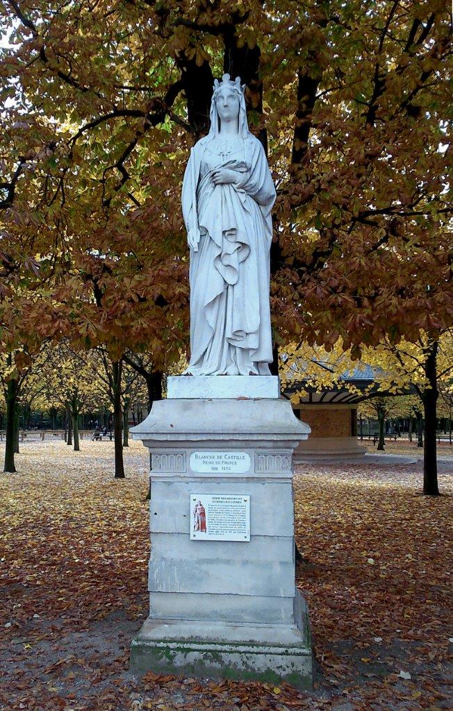 Branca de Castela [sua estátua na foto abaixo], mãe de São Luís IX de França, foi uma rainha medieval que assumiu a regência do reino enquanto seu filho ainda não podia fazê-lo. Além de ter sido uma excelente governante, é cultuada como santa.