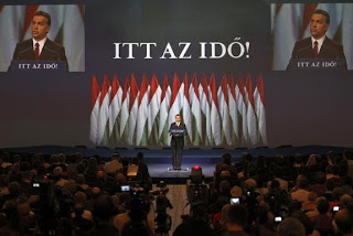 As direitas obtiveram esmagadora vitória nas eleições legislativas na Hungria. Após o segundo turno, o partido de centro-direita Fidesz [foto] ganhou mais de dois terços das cadeiras do Parlamento, e a extrema-direita anti-União Européia conquistou 47 lugares. O Partido Socialista — “maquiagem” do antigo Partido Comunista, até agora no poder — ficou com apenas 59 deputados. Para o “Le Monde”, tratou-se de uma “revolução conservadora de alcance inédito”. O partido de centro-direita pode agora apagar os restos de comunismo que ficaram na constituição húngara, desde que aja com sabedoria — virtude cada vez mais rara na Europa laicizada.