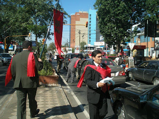 Mais abaixo, fotos da campanha da TFP paraguaia, divulgando o documento nas ruas de Assunção, onde obteve excelente acolhida do público.