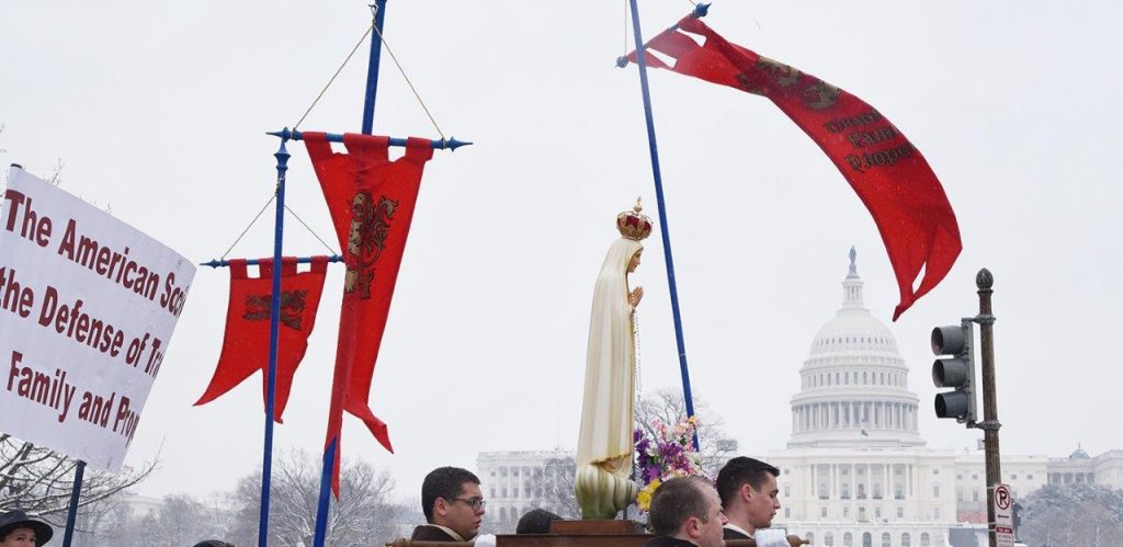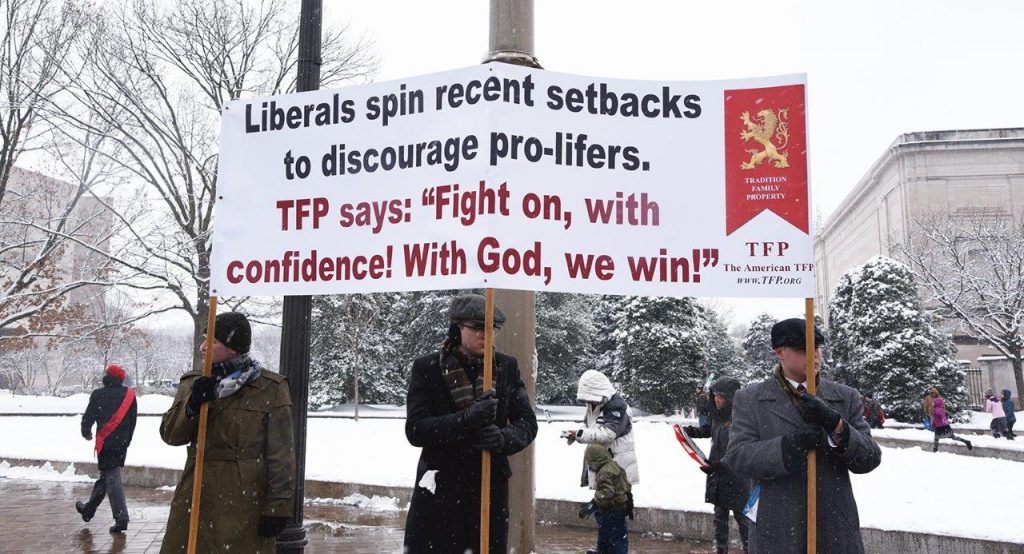 Membros da Sociedade Americana para a Defesa da Tradição, Família e Propriedade (TFP) participaram desse multitudinário evento anual, exortando os pró-vida a continuarem a batalha para eliminar o aborto nos Estados Unidos e retornar à ordem cristã.