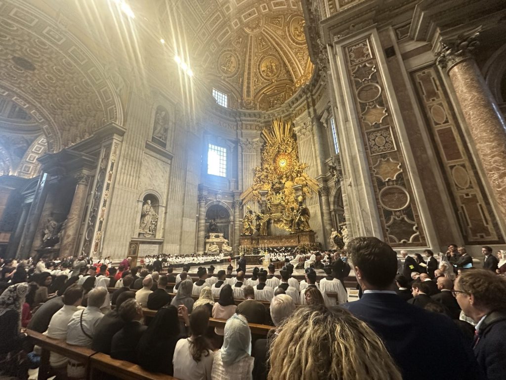 As novecentas cadeiras preparadas mostraram-se insuficientes para uma população três ou quatro vezes mais numerosa, composta de homens e mulheres, jovens e velhos, que vieram de todo o mundo. O evento tornou-se extraordinário pelo próprio lugar onde aconteceu: uma cenografia única no mundo, onde arquitetura, escultura, teologia e história se entrelaçam para tornar visível a missão da Igreja e do Papado: preservar a fé e transmiti-la ao longo dos séculos.