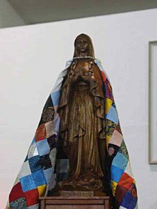 Católicos da Mongólia ofereceram um precioso tecido com o qual foi feito um manto para a Virgem [foto ao lado], a qual foi exposta na catedral.