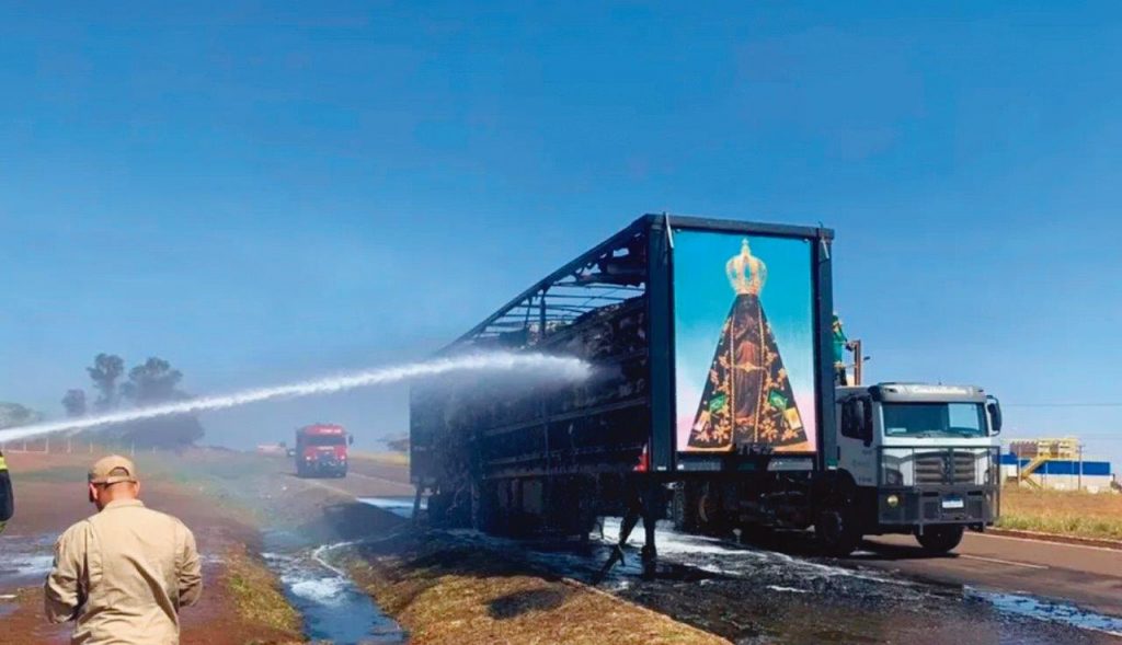 Em julho deste ano, um grande pôster com a imagem da Rainha e Padroeira do Brasil ficou intacto após as chamas destruírem completamente o baú de uma carreta que transportava algodão, em Bataguassu (MS).