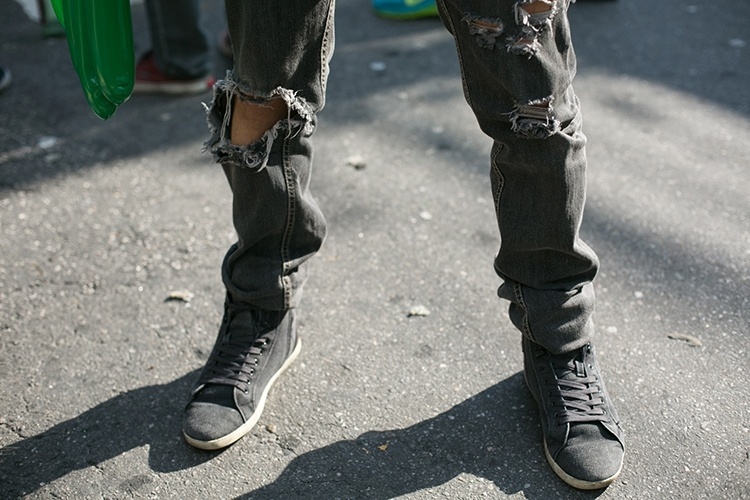 Nem sequer as temperaturas baixas e o vento frio as impedem de usar tais calças, apesar de terem o tronco agasalhado; e quanto mais rasgadas forem as calças, mais envaidecidas as pessoas que as usam. Que lógica tem isso? Perguntadas, elas não sabem o que responder. Usam-nas por usá-las, e está acabado. Nem os moradores de rua são vistos, até agora, com tais roupas.