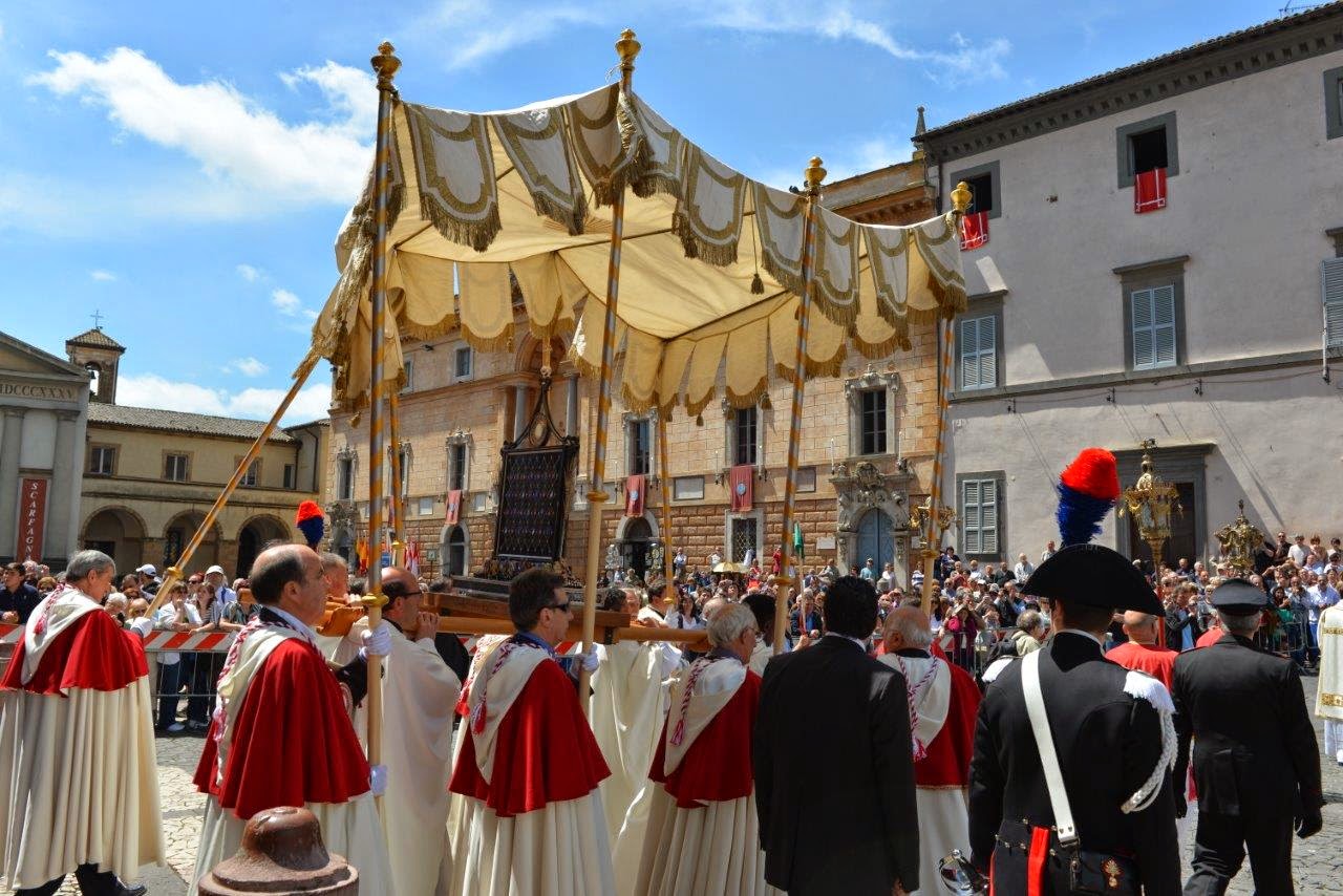 A partir da determinação de Urbano IV para se festejar o dia de Corpus Christi, uma soleníssima procissão se realiza todos os anos pelas encantadoras ruas de Orvieto. Antes de seu início, logo pela manhã, no interior da Catedral é realizada com grande pompa a cerimônia da exposição e adoração da Santíssima Eucaristia. Segue-se a celebração da Missa solene. Logo depois tem início a magnífica procissão, com o venerável Corporal percorrendo as ruas da cidade, cujas casas ornam suas janelas e sacadas com bandeiras, tapeçarias e maravilhosos arranjos florais.