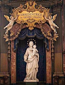 Os homens podem tentar “decapitá-la”, reduzindo-a a uma mera mulher, mas Maria permanece Mãe de Deus, Imaculada, Sempre Virgem, Assunta ao Céu, Rainha do Céu e da Terra, Corredentora e Medianeira Universal de todas as graças, porque, como explica São Bernardino de Siena: “Toda graça concedida aos homens procede de uma causa tríplice: de Deus passa para Cristo, de Cristo passa para a Virgem, da Virgem nos é dada” (Serm. VI in festis B.M.V., a. 1, c. 2).