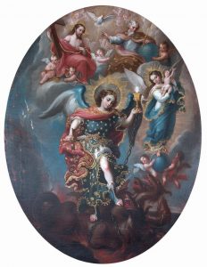 São Miguel Arcanjo na Visão do Apocalipse – Miguel Cabrera (1695-1768). Museu da Basílica de Guadalupe, Cidade de México.