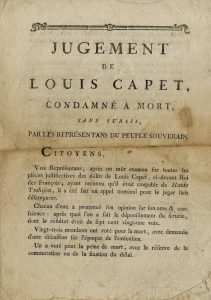 O Rei pretende continuar sua objurgatória, mas um homem a cavalo, em uniforme da guarda nacional, desfere a espada sobre um dos tambores e força-os a cobrir a voz do Rei com o seu ruído. Nesse instante supremo, a um passo da guilhotina, os revolucionários ainda temem que as palavras do soberano comovam a multidão e todo o processo revolucionário retroceda!