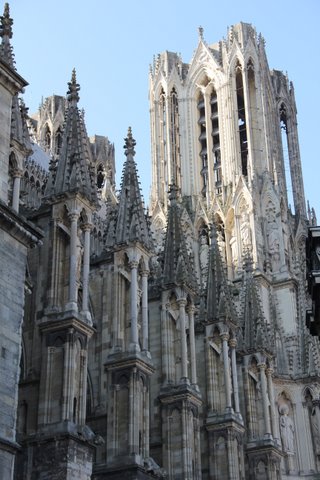 Apesar de seu projeto não ter sido inteiramente realizado, a catedral de Reims é das mais belas da França e da Europa. Viollet-le-Duc, o gênio da restauração medieval no século XIX, pensava em concluir as torres da catedral com suas agulhas apontando para o céu. Não foi possível.