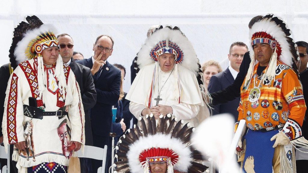 Francisco chamou esta sua viagem ao Canadá de “peregrinação penitencial”.35 A Igreja, disse ele, “contribuiu com as políticas de assimilação cultural que, no passado, prejudicaram gravemente as comunidades indígenas”. Ele também chamou as tentativas de assimilar os índios à civilização ocidental de “erro desastroso”.36 O porta-voz do Vaticano, Andrea Tornielli, escreveu que a principal mensagem do Papa Francisco é um “pedido de perdão pelos desastres causados pela mentalidade colonial que procurou erradicar as culturas tradicionais” que “impuseram seus próprios modelos culturais”.37
