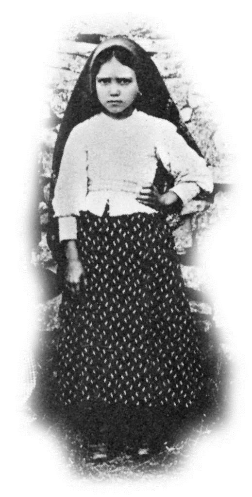 1. Lúcia de Jesus, nascera em 22 de março de 1907, última de seis filhos de Antonio dos Santos e Maria Rosa dos Santos. Os dois primos dela, Francisco e Jacinta, nascidos o primeiro a 11 de junho de 1908 e a segunda a 11 de março de 1910, eram também os mais novinhos dos onze filhos que teve a Sra. Olímpia de Jesus: dois do primeiro matrimônio com José Fernandes Rosa, e nove do segundo com Manuel Pedro Marto. Quanta vez os últimos filhos de numerosa família cristã são para ela a melhor bênção! (Cfr. Pe. Luiz Gonzaga Ayres da Fonseca, S.J., Nossa Senhora da Fátima, Aparições, Culto, Milagres, Livraria Apostolado da Imprensa, Porto, 1947, 2ª edição, p. 144.