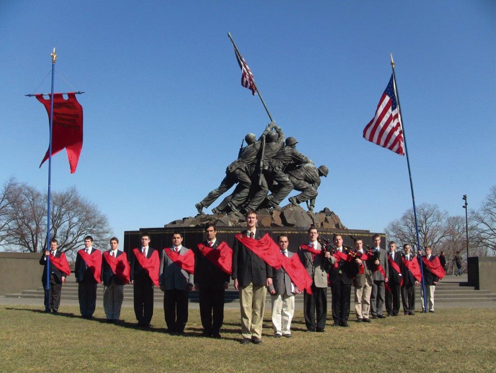 No Memorial de Guerra do Corpo de Fuzileiros Navais dos EUA (Iwo Jima), em Washington.